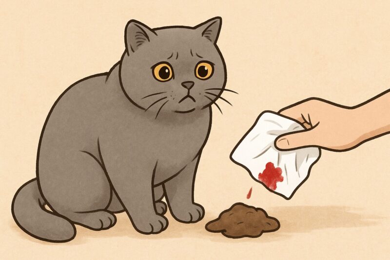 先日、うちの愛猫こむぎ(ブリティッシュショートヘア)がトイレをしたあと、お尻をウェットティッシュで軽く拭いた時に血がついているのを発見しました。一見、元気そうで普段と変わらない様子だったので驚きましたが、翌日・その翌日にも同様の症状があり、動物病院で相談したところ、獣医師から「人間から感染した**新型コロナウイルス(SARS-CoV-2)**が関係している可能性」があると言われました。